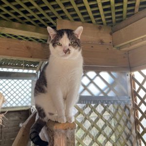 After a few weeks of them being inside the time had come that we needed to open the door and let them out to enjoy some fresh air. We were of course, a little apprehensive but they had both been here long enough and seemed settled. They ventured outside, the room is towards the back of the sanctuary so they come out to the field area. They had a little wander then came back in which we were pleased about. This went on for some time, until we noticed we hadn’t seen Motley for a day or two. We became a little worried but after a few days he returned. He was a little hungry so he filled himself up with food but a couple of days later, he went again. This looked like this was going to become a regular occurrence and indeed it was. Motley now regularly takes himself off for a few days but always returns when his stomach rumbles! Henry also likes to be outdoors and at one point went to a house close to us just across the fields and we went there to bring him back. However after a few days he returned to the house and now splits his time between the sanctuary and the house. The lady who lives there doesn’t mind him and he is well fed at both locations, so he is on a tidy number!
