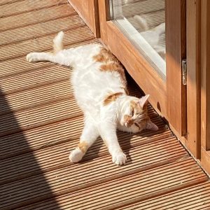 When Tinker was a few months old, and he and all the others had been neutered and spayed, they ventured outside. Tinker and his Dad, Jerry soon came around to the main areas and Tinker would follow us around letting us know very loudly that he was there! Tinker’s mother and aunty are friendly enough but have remained nervous but are now quite comfortable in the Willows, where Jerry also sleeps. The other female sadly has remained very feral and keeps herself to herself around the back but enjoys her comforts and food at night. It was documented on our page that we very sadly lost Jessica towards the end of 2021 but she played her part in Tinker’s upbringing and it was great to see her enjoy the company from this family in her last days.